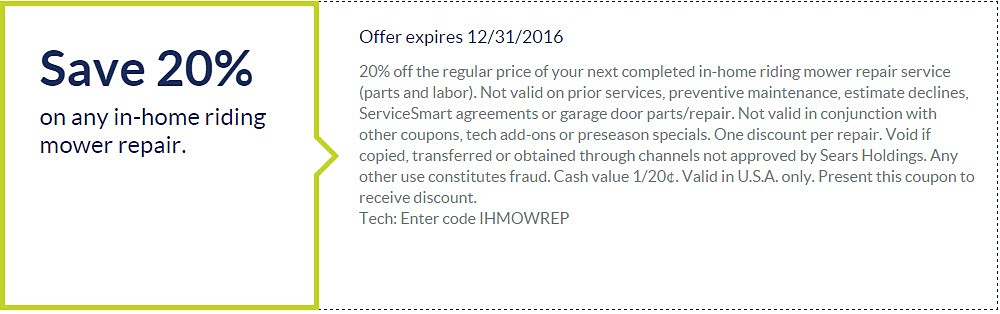 Sears 20 percent off repair coupon